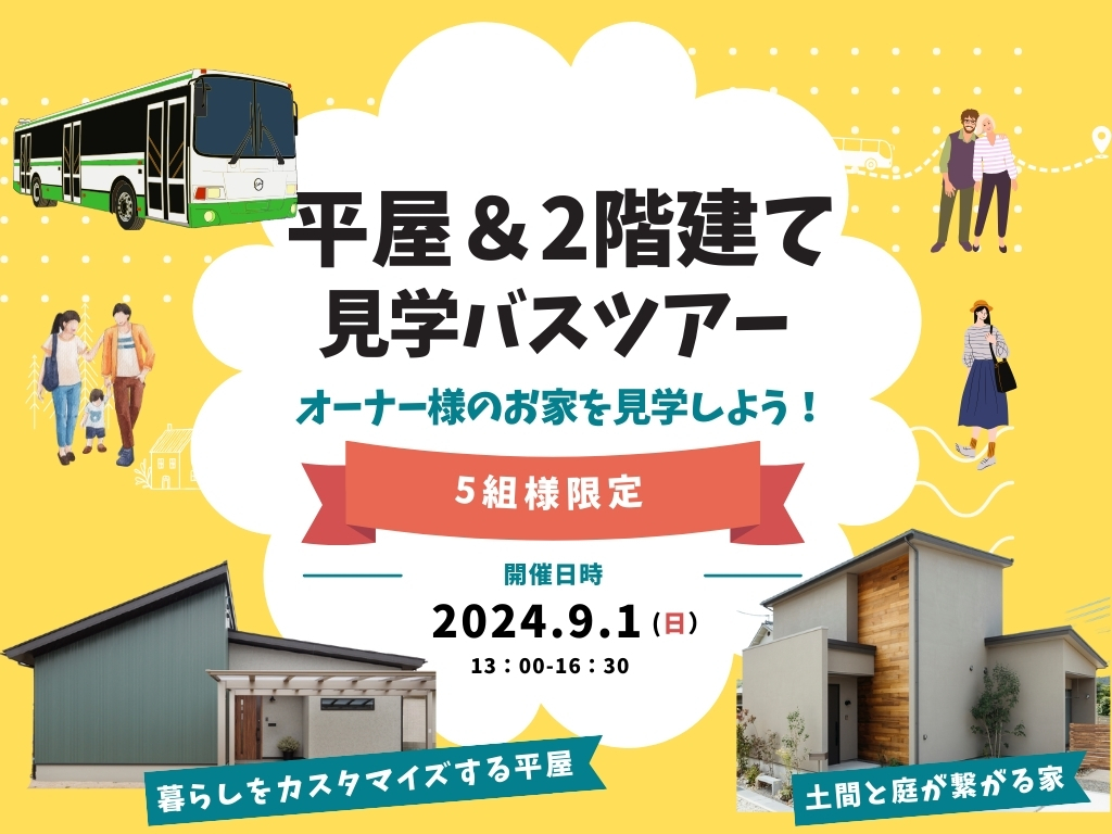 | タイトル | 【オーナー様の住まいを見学しよう!】平屋&2階建てバスツアー |