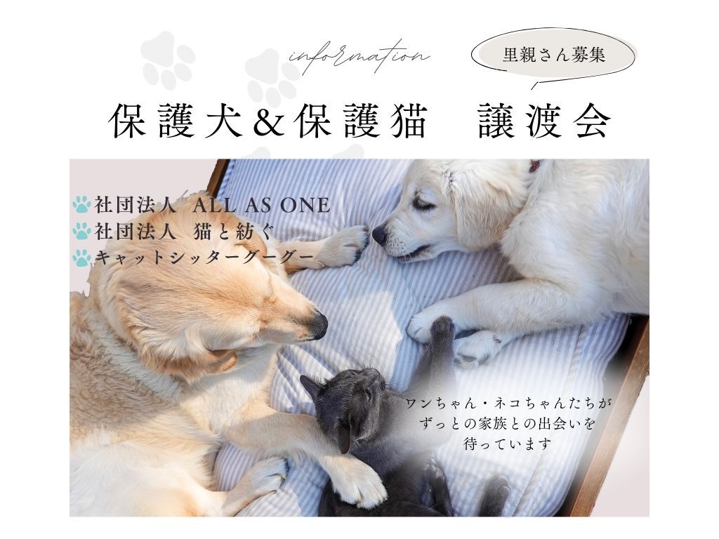 里親様、ワンちゃん・猫ちゃんたちに良いご縁がある事を願います。