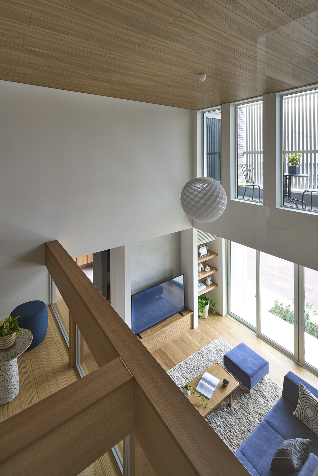 吹き抜けの高さで開放的なリビングになるだけでなく、どこにいても家族の気配を感じられ、コミュニケーションも取りやすくなります🎵