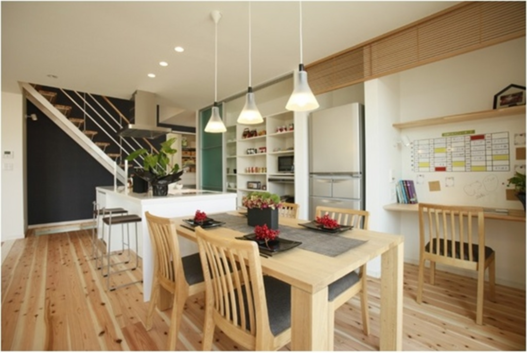 さらに、家事を楽にするための設計にもこだわっています。「使いやすい収納計画」「家事を楽にする設計」「会話の増える間取り」をテーマにしたこの家では、リビング・ダイニングや収納のレイアウトを子育てを中心に考え設計しました。