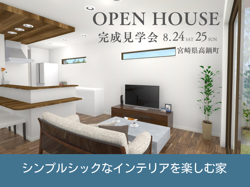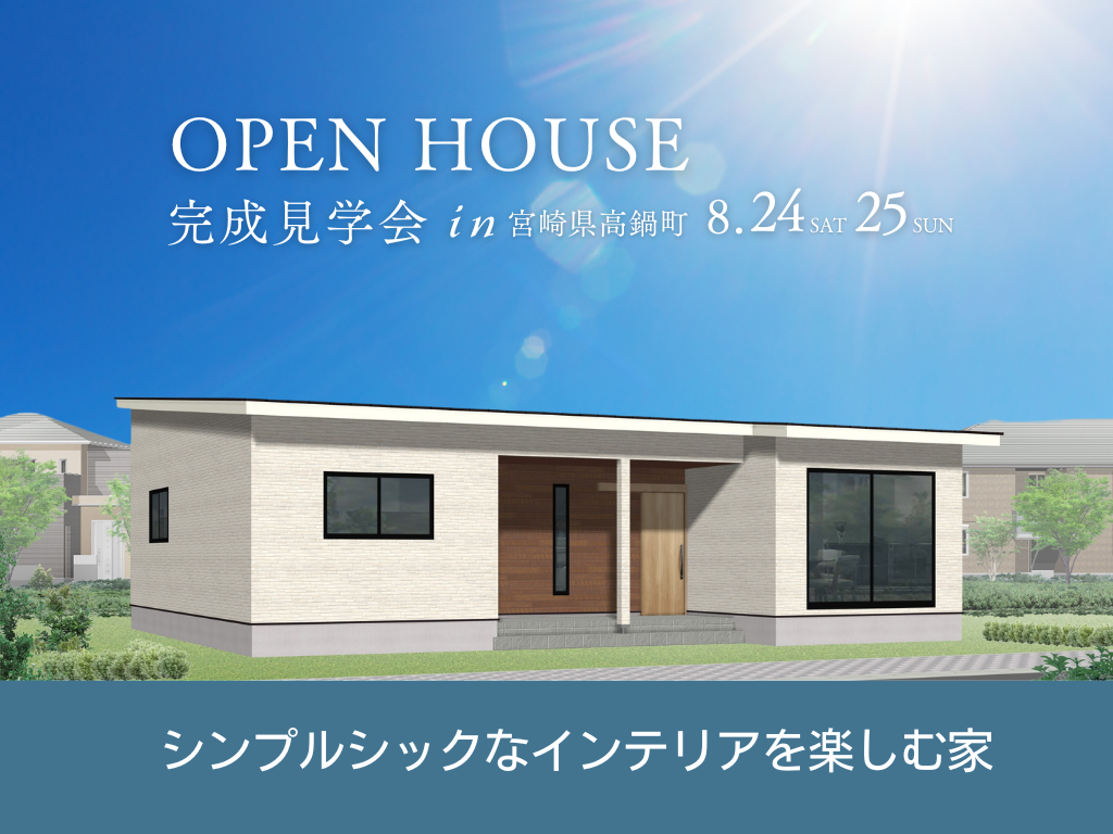 | タイトル | 宮崎県高鍋町『シンプルシックなインテリアを楽しむ家』見学会 |
