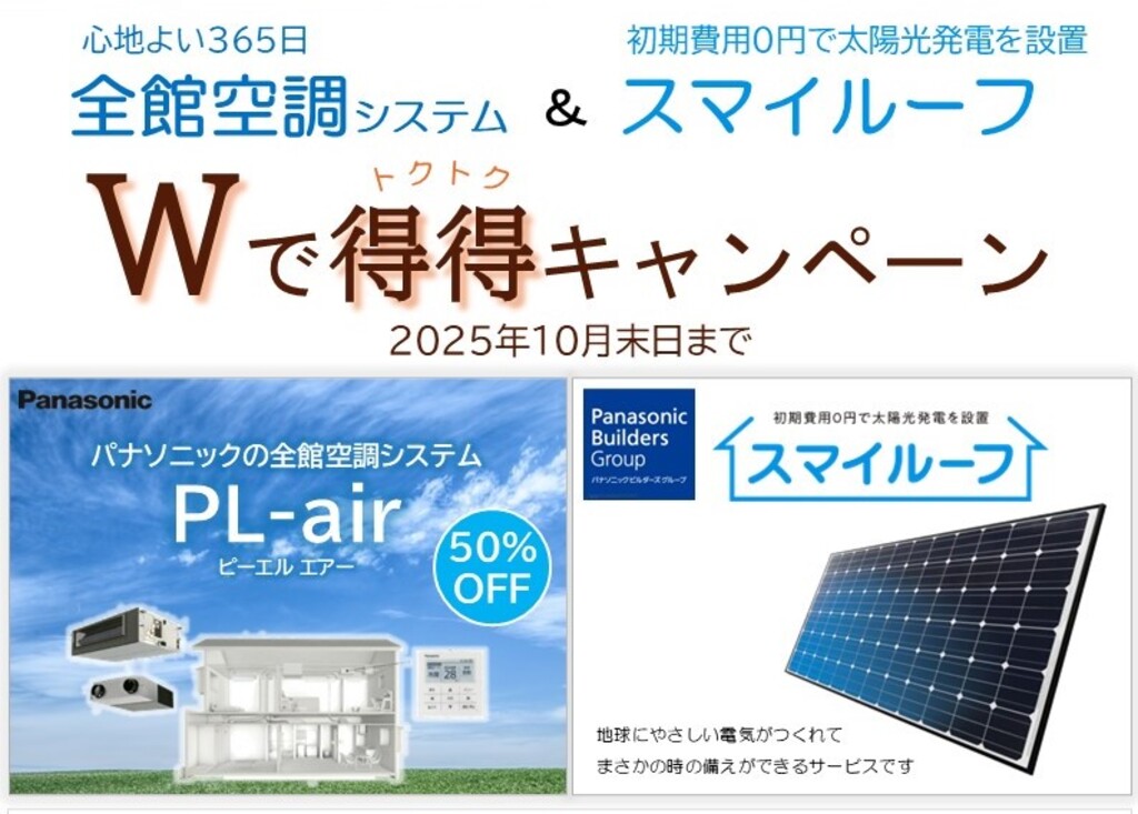 <10月末まで>全館空調・太陽光発電をお得に搭載できるチャンス!Wで得得キャンペーン開催中!!