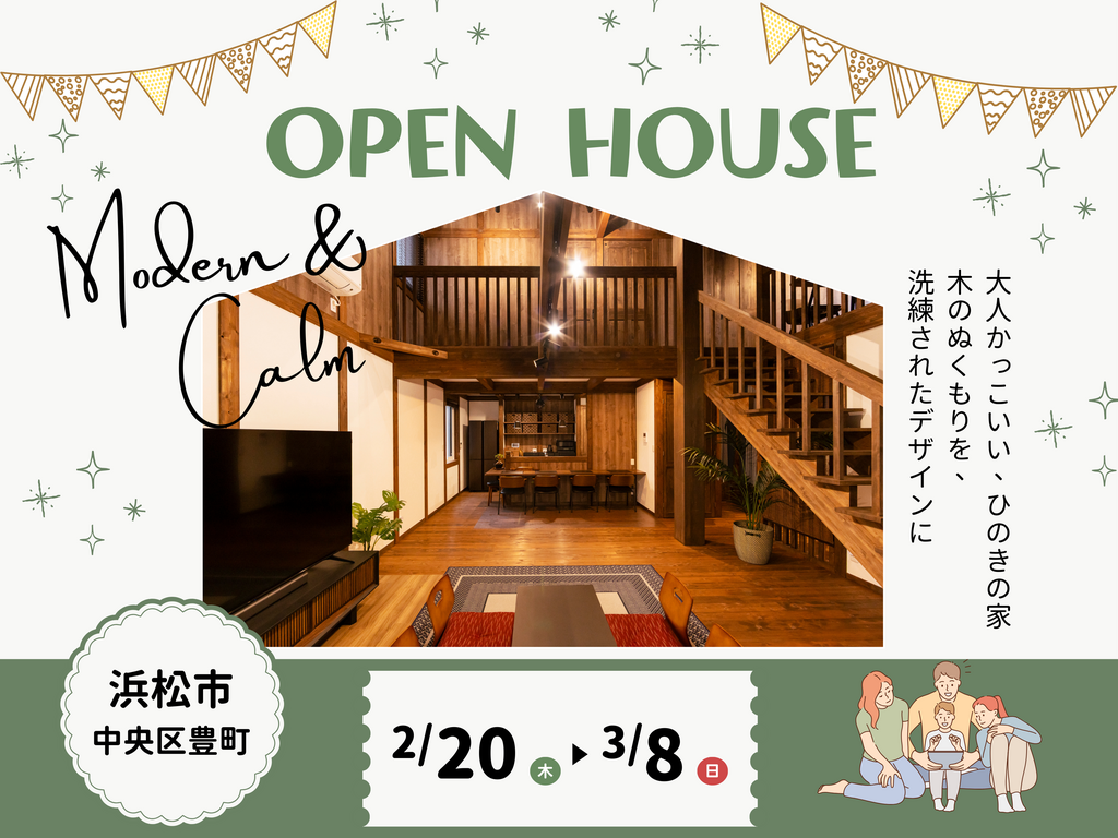 浜松市中央区豊町にて、お施主様のご厚意により期間限定の完成見学会を開催いたします。