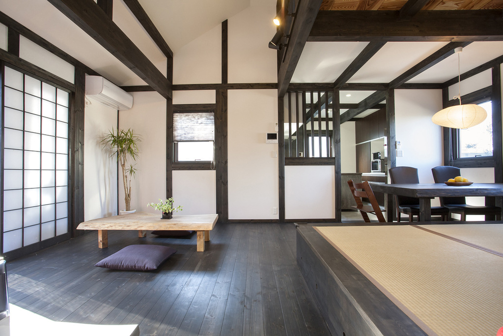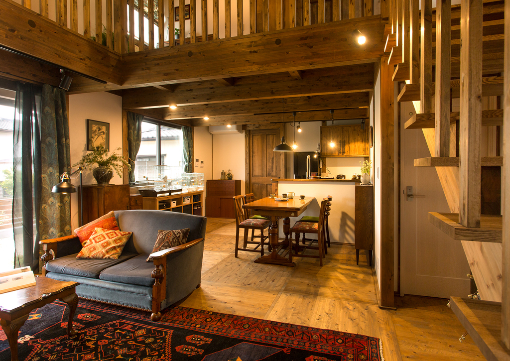伝統的な古民家の特徴はそのままで、吹抜けを利用したリビングやキッチンを広くして独立させたり、フローリングの床に太い柱や梁を配置するなど様々なカスタマイズが可能。モダンなテイストとトラディショナルな雰囲気を一体化させた「心地よさ」を体感できる住まいを実現することができます。