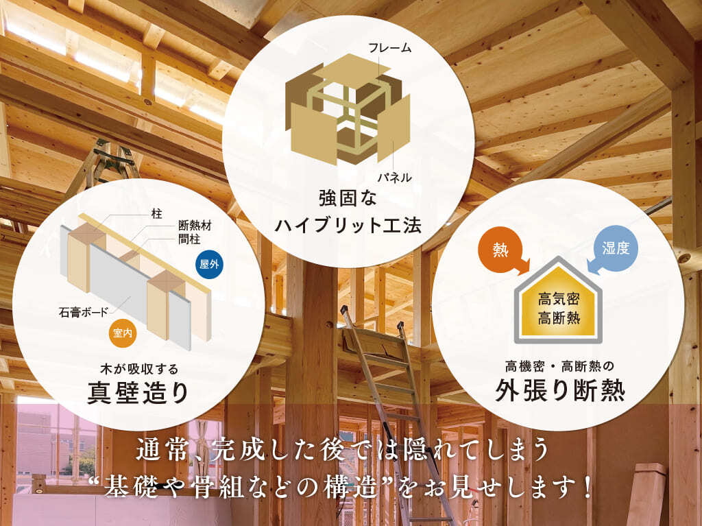 見どころ② 軸組×パネル 強固なハイブリット工法
