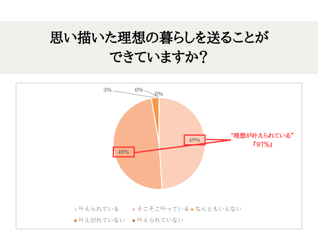 OBアンケートでの理想の暮らしが叶えられていると回答された方は、97%!徹底的に寄り添います。
