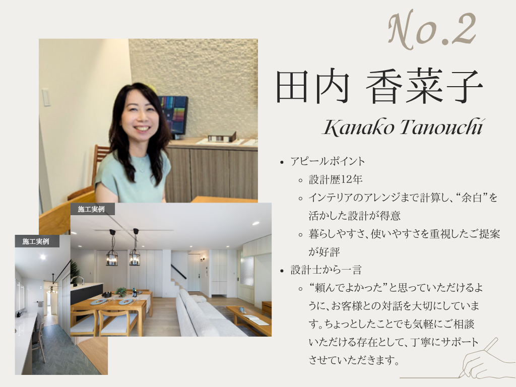 ※拠点・スケジュールの都合で希望する設計士が同席できない場合もございます。あらかじめご了承ください。