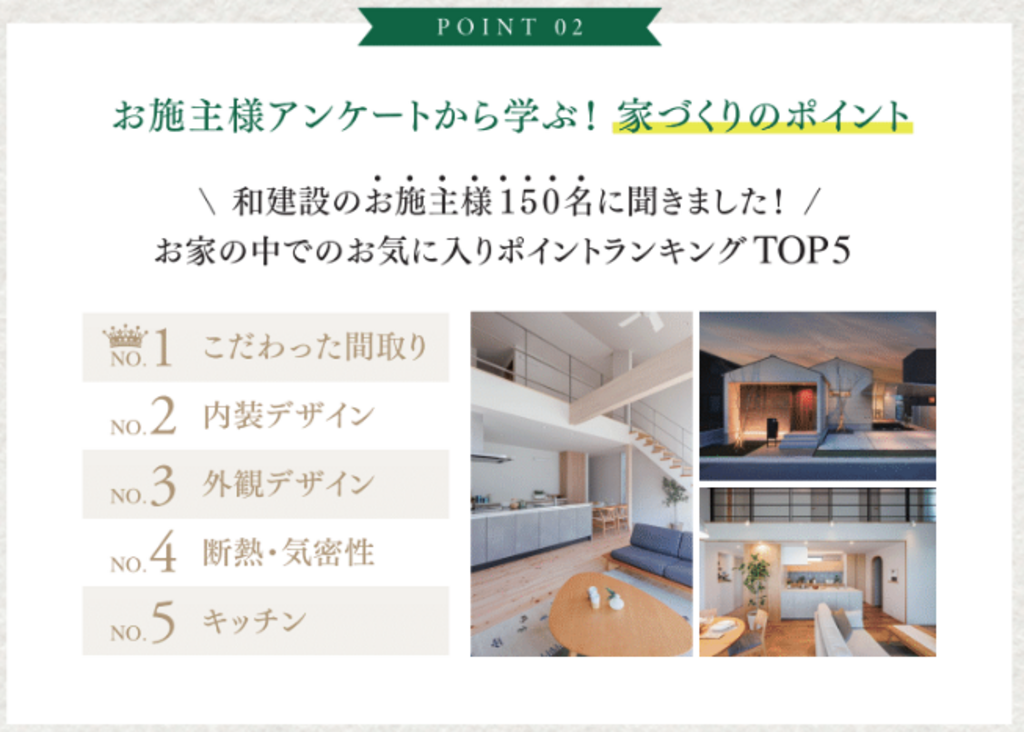 私たちがお引き渡しをした150組のお施主様に行ったアンケートでは、