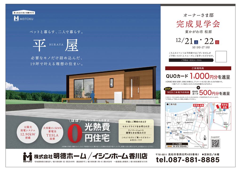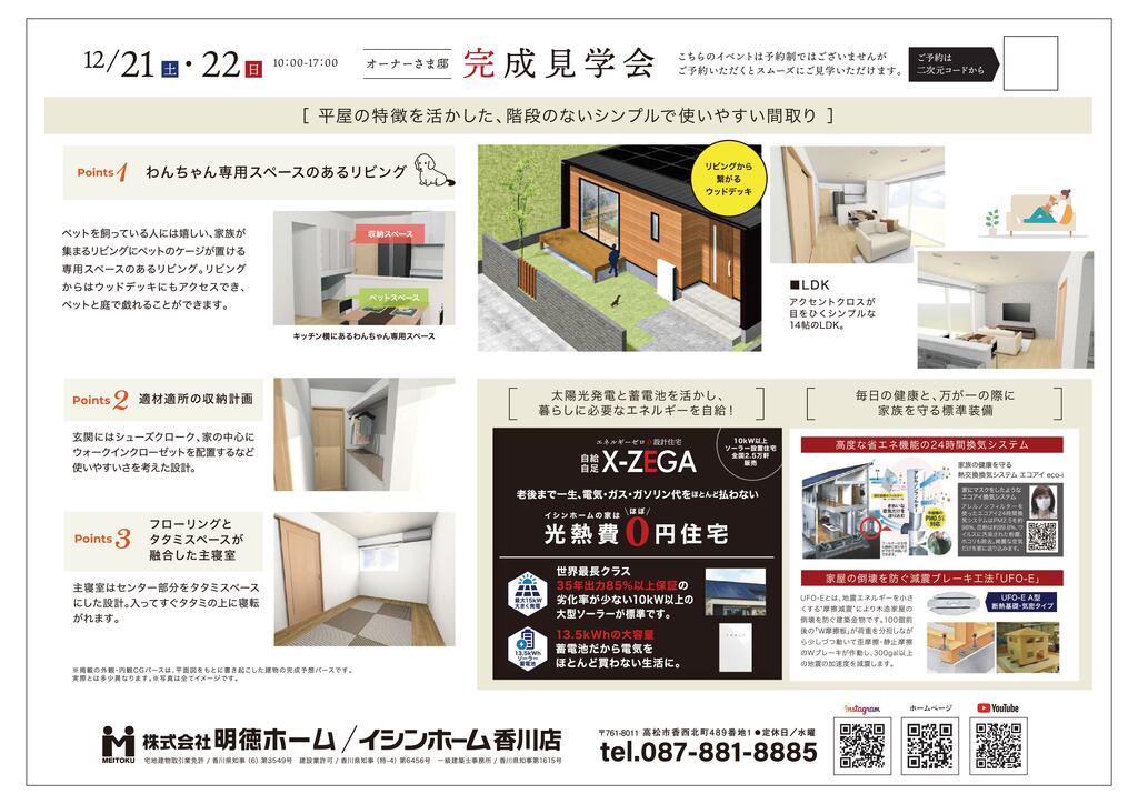 | タイトル | ペットと暮らす、二人で暮らす、平屋 オーナー様邸完成見学会 in 東かがわ市 |