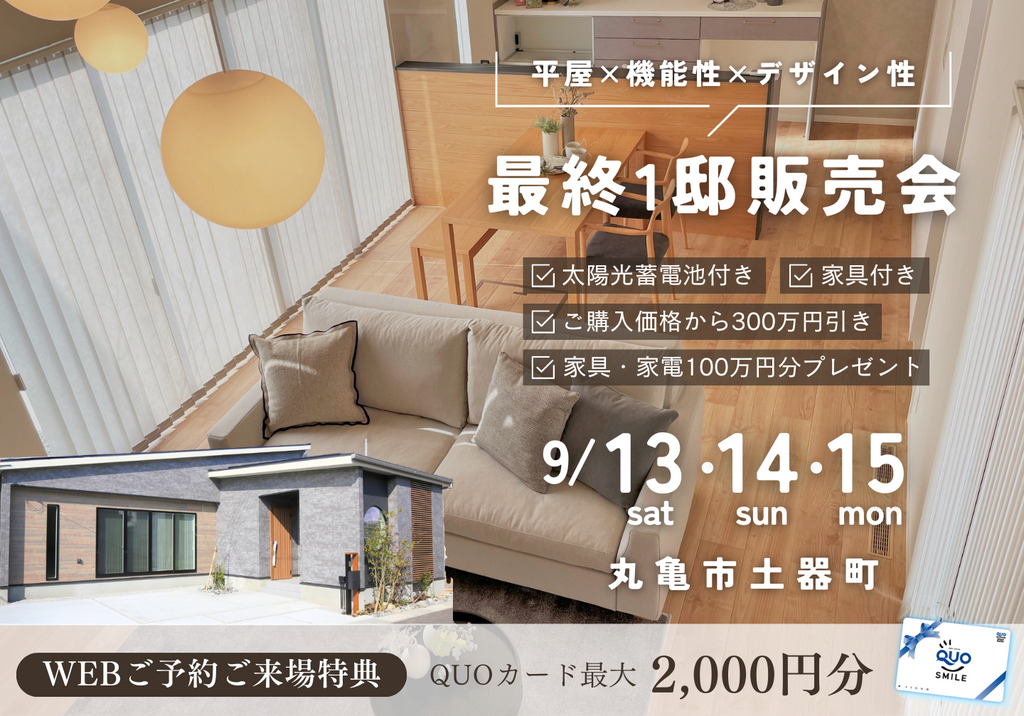 | タイトル | 【平屋最終分譲LAST1フェアin丸亀】9/13.14.15開催 |