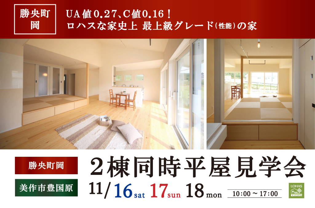 | タイトル | 2棟同時平屋見学会|勝央町岡 |