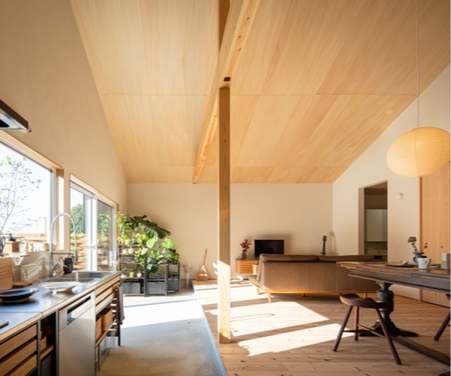 02 | 21帖の開放的な三角屋根の吹き抜け