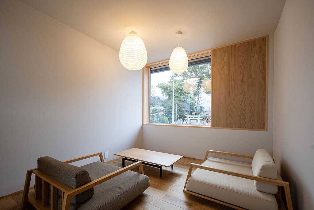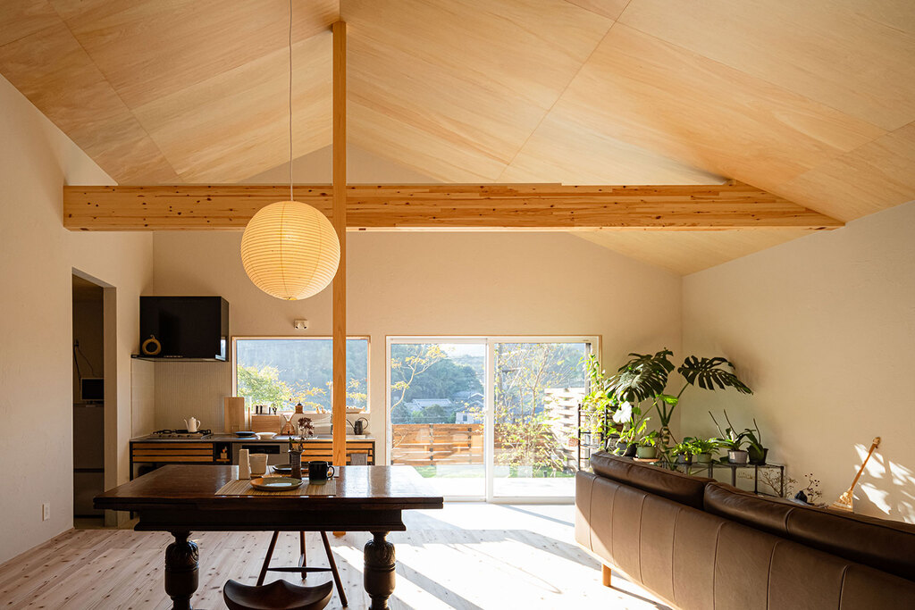 アカシア無垢材や下がり天井で上質さを演出した 32坪の等身大モデルハウス