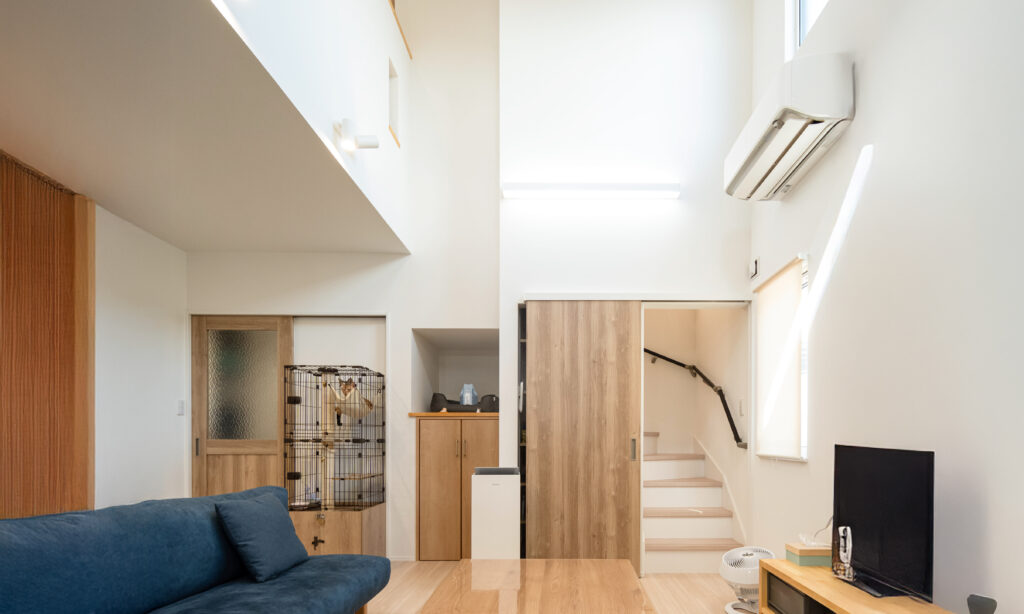 街なかの暮らしに開放感を添える吹き抜けからは