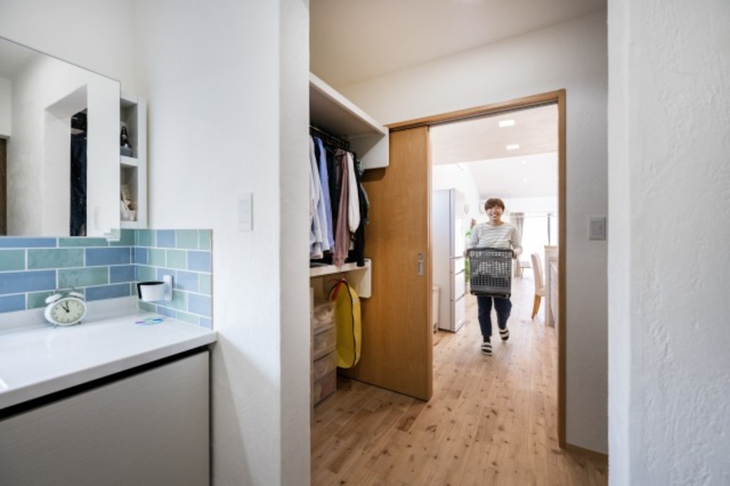 キッチン、洗面所、ランドリースペース、ウォークインクローゼットが近接しており、日々の家事がスムーズに進みます。