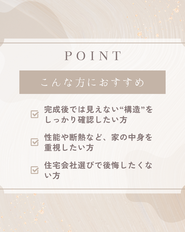 完成してからでは確認できない、構造・断熱・耐震のヒミツ。