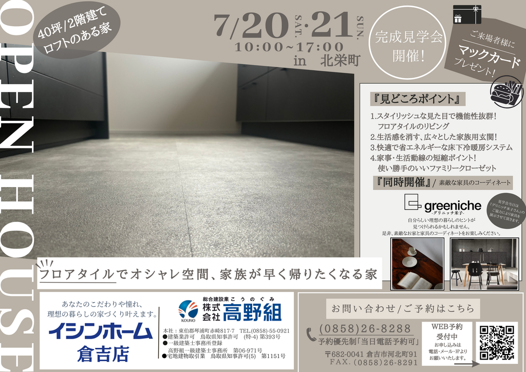 | タイトル | 【完成見学会】~フロアタイルでオシャレ空間、家族が早く帰りたくなる家~in北栄町 |