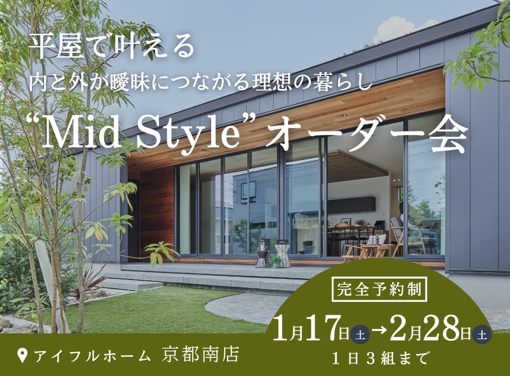 | タイトル | 平屋で叶える内と外が曖昧につながる理想の暮らし“Mid Style”オーダー会 |