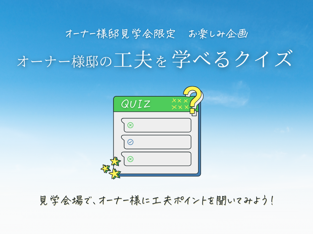 オーナー様の工夫を効率よく学んでいただくために、見学会場を回りながら学べるクイズをご用意しました!