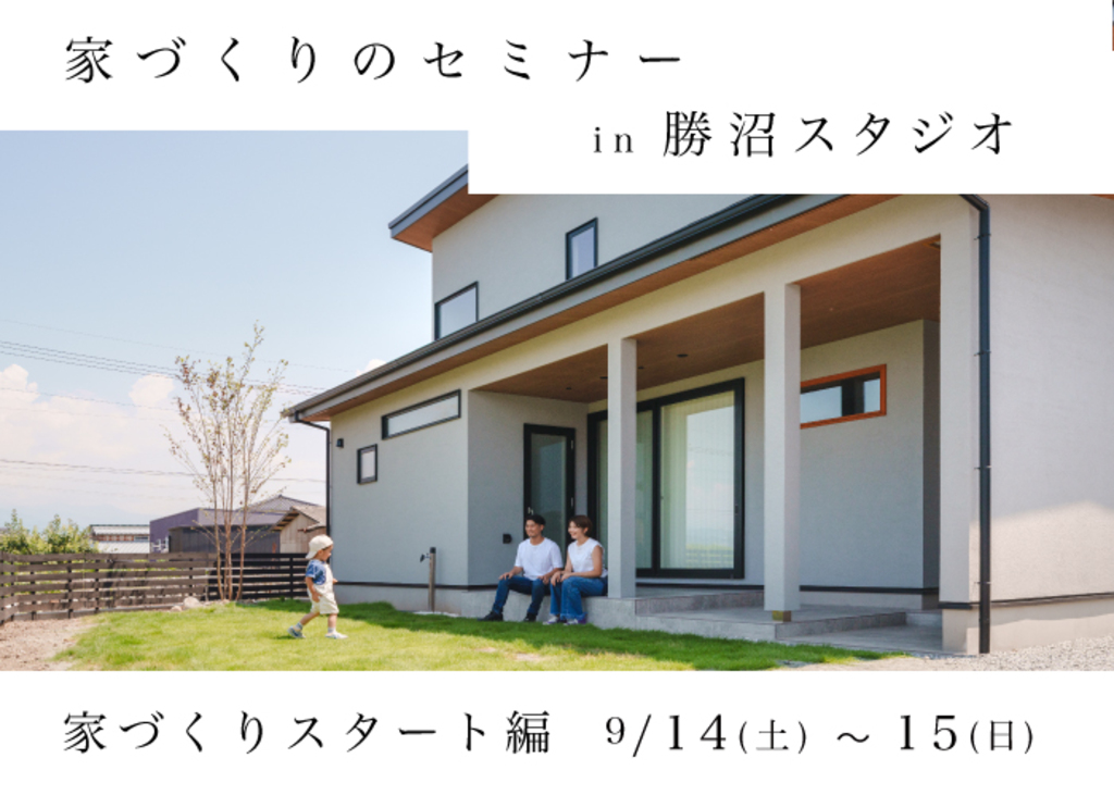 | タイトル | 家づくりのセミナー「家づくりスタート編」9/14(土)〜15(日)【勝沼スタジオ】 |