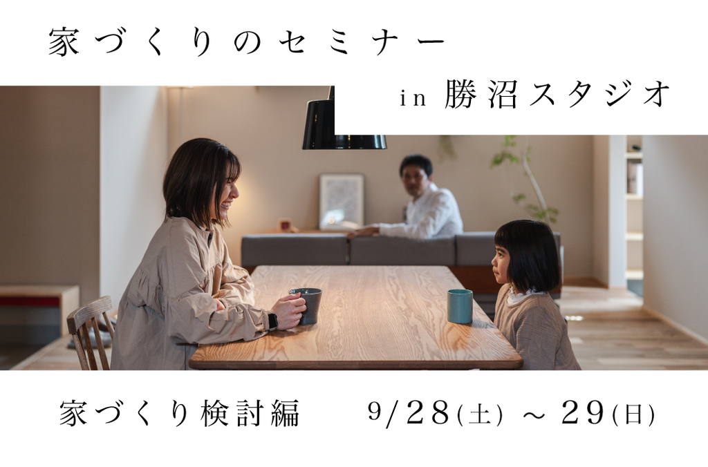 | タイトル | 家づくりのセミナー「家づくり検討編」9/28(土)〜29(日)【勝沼スタジオ】 |