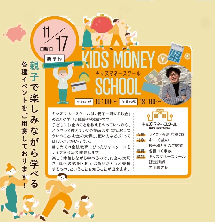 | タイトル | 【ライファ今治 創業30周年祭】家族で学ぶ!キッズマネースクール開催 |