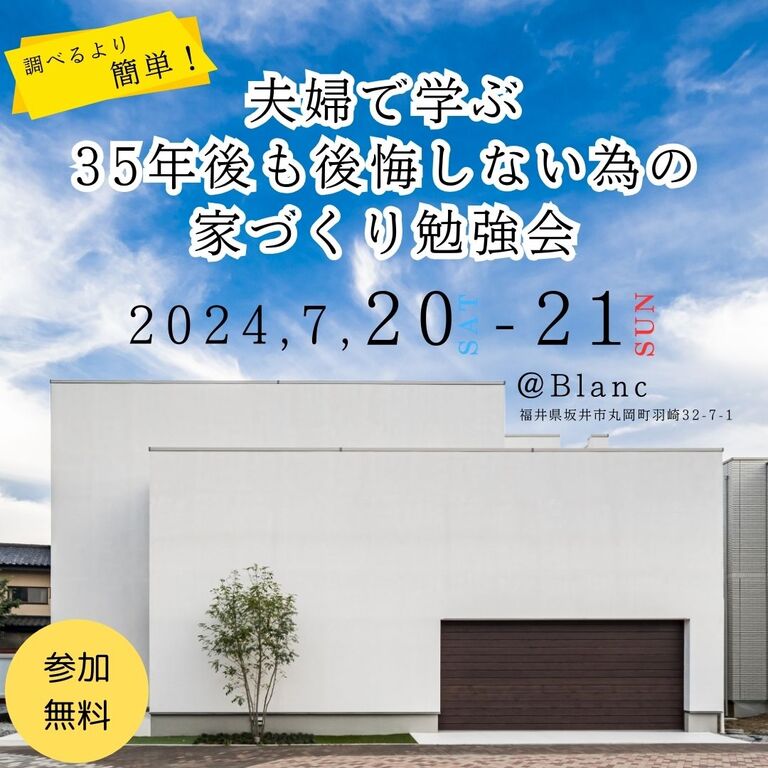 | タイトル | 夫婦で学ぶ35年後も後悔しないための家づくり勉強会 |