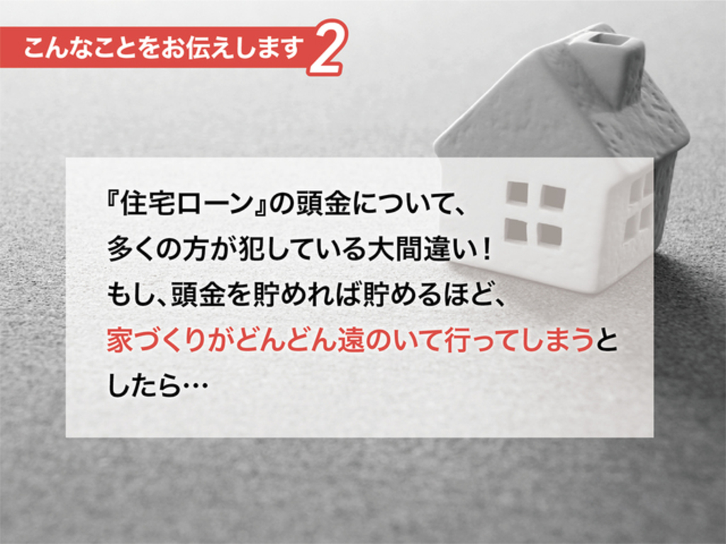 | タイトル | 夫婦で学ぶ35年後も後悔しないための家づくり勉強会 |