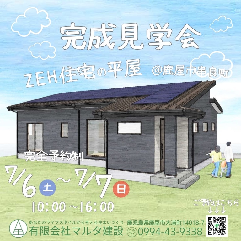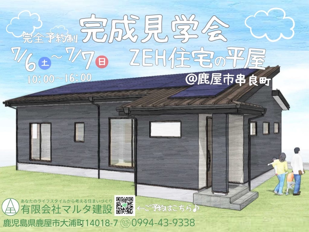 | タイトル | 【鹿屋市串良町】予約完成見学会/子育てを絆を深める家計に優しいZEH住宅 |