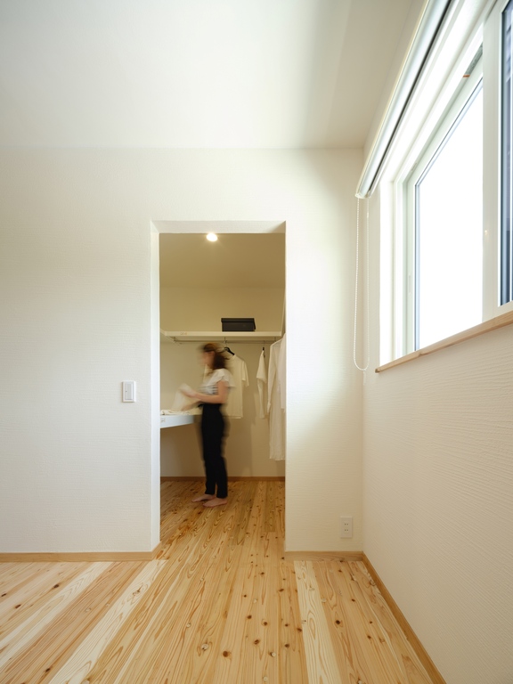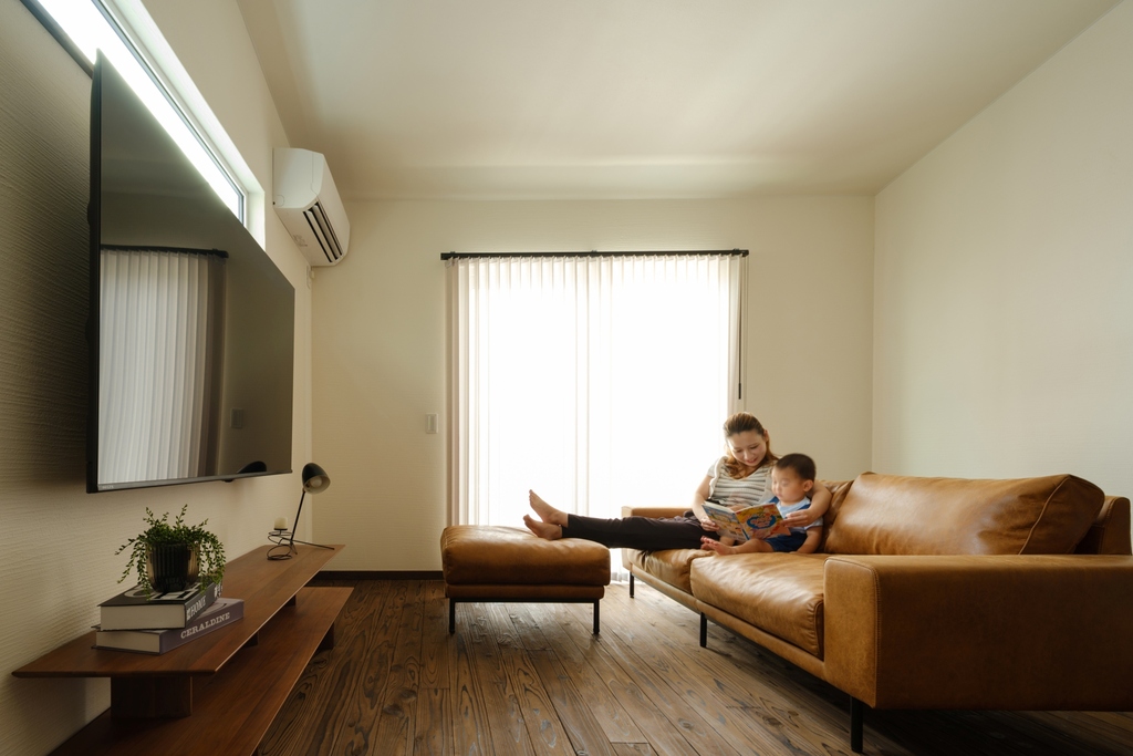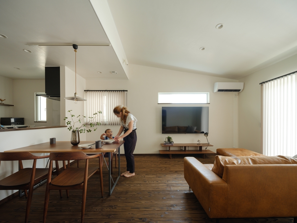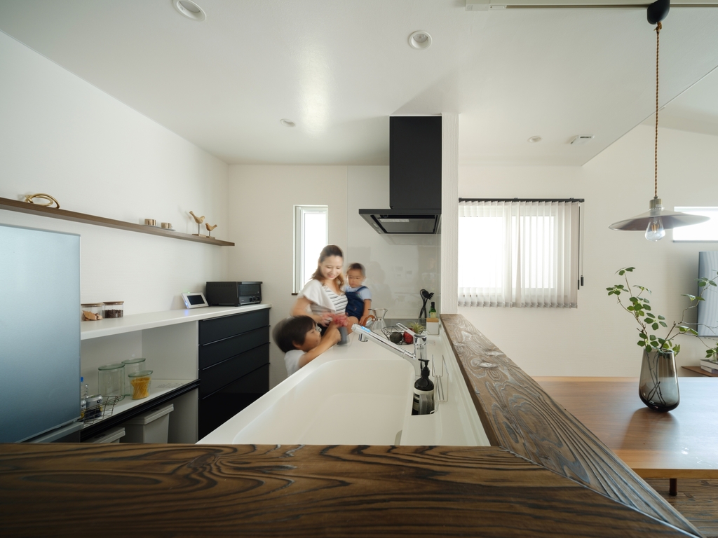 室内は、丸和建設が大切にしている杉の無垢の床材や空気を綺麗にする漆喰をふんだんに使用した、木の香りが落ち着く空間に。お施主様のライフスタイルを踏まえ、日々の家事など生活しやすい動線設計をしています。また、耐震性や断熱性・気密性といった性能面においても数字に裏打ちされた高い性能も実現しています。