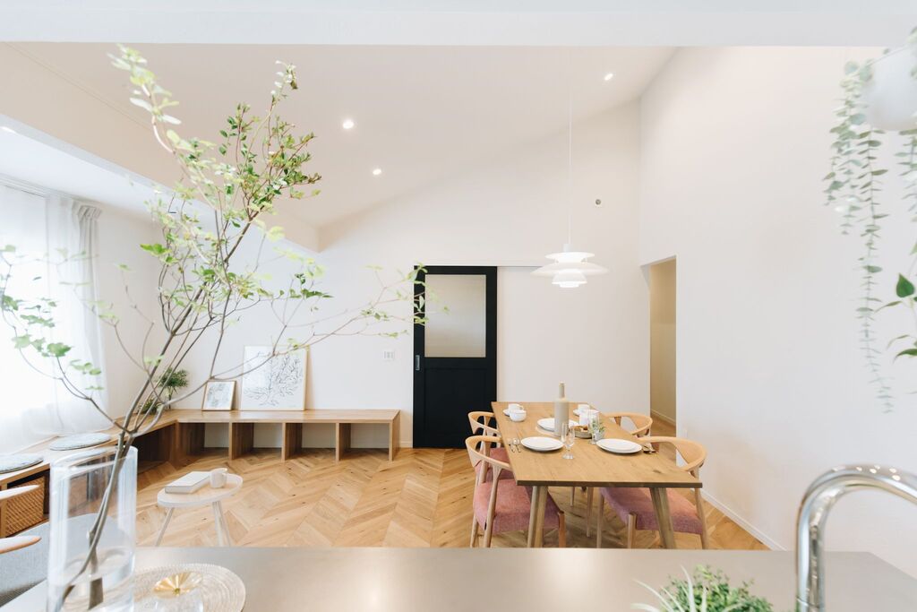 北欧の自然を思わせる白い外壁と、木の温もりを感じる内装が特徴的な平屋は、自然と調和した住まいを目指す方々におすすめです。