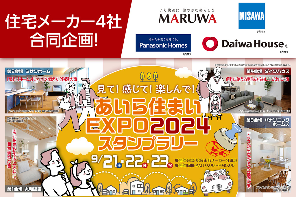 | タイトル | 住宅メーカー4社合同イベント あいら住まいEXPO2024スタンプラリー |