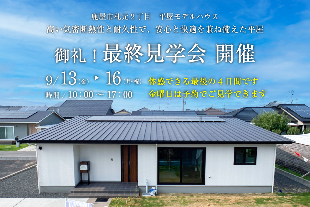 | タイトル | 【鹿屋札元モデルハウス】御礼!最終見学会 |