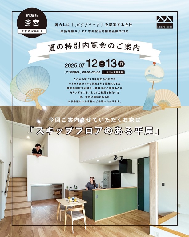 | タイトル | 7月12.13日 明和町斎宮にて完成見学会! |