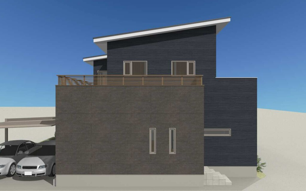 3色の外壁材をバランスよく配置し、