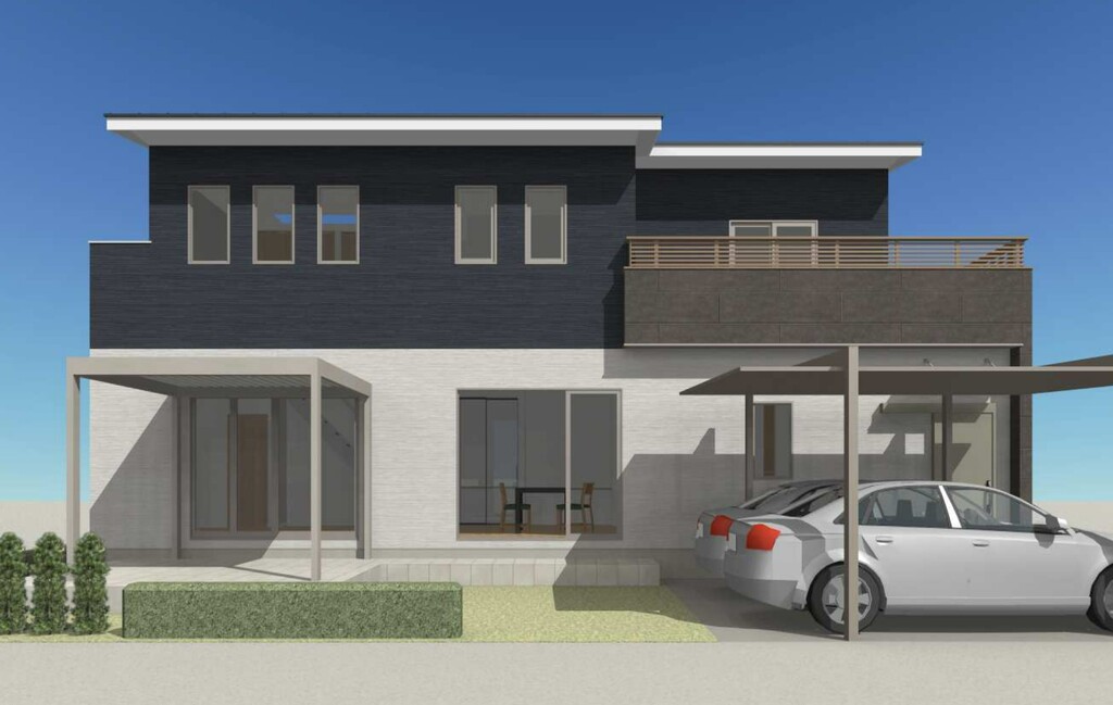バルコニー手摺が外観にリズムを生み出すデザイン。
