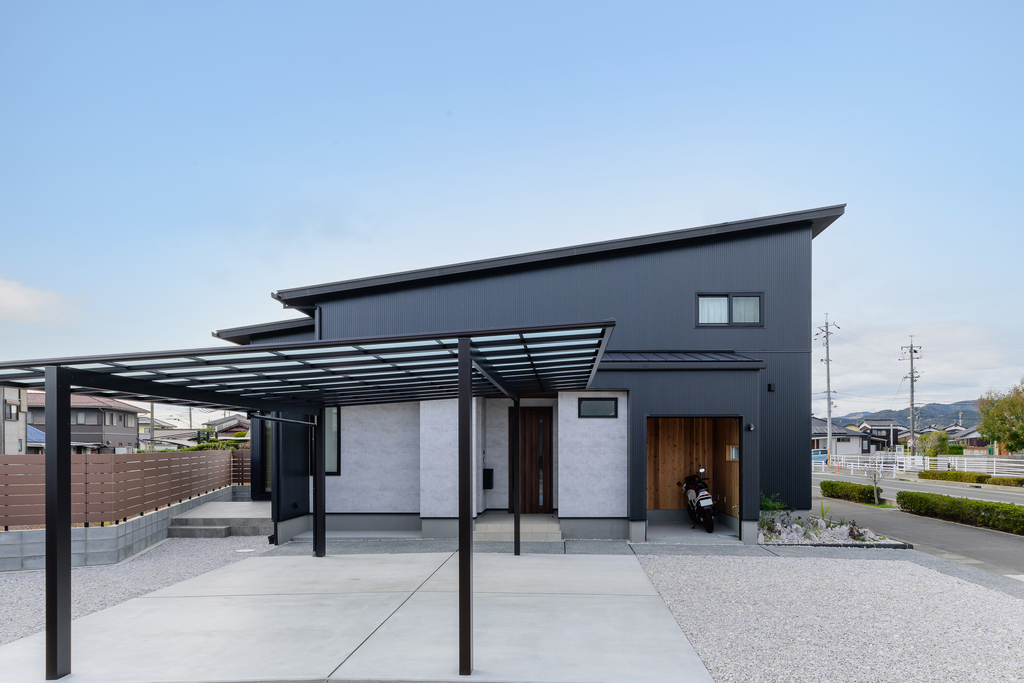 外壁:ガルバリウム鋼板+一部化粧サイディング