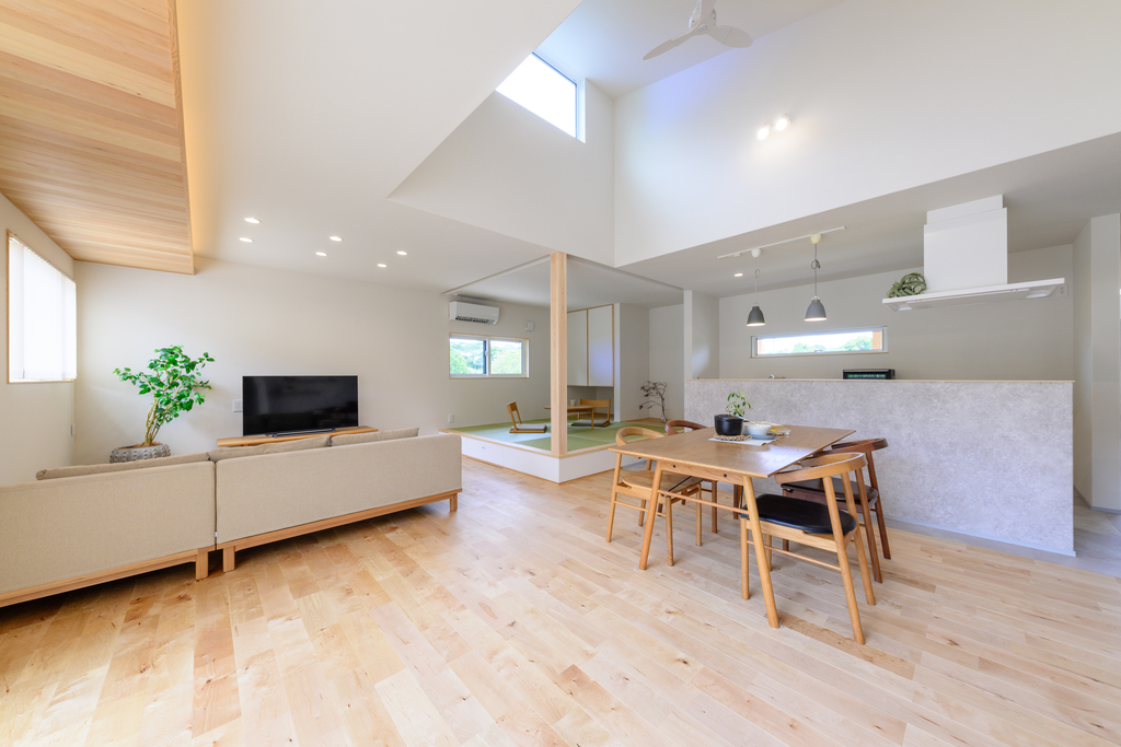 広い庭、広いリビング。家族がのびのびと日々を紡ぐ家。