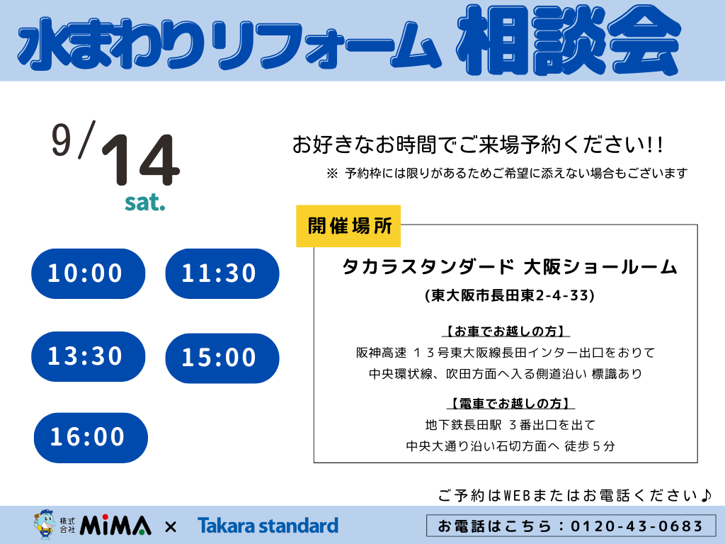 | タイトル | 水まわりリフォーム相談会 in タカラスタンダード大阪ショールーム リフォーム |