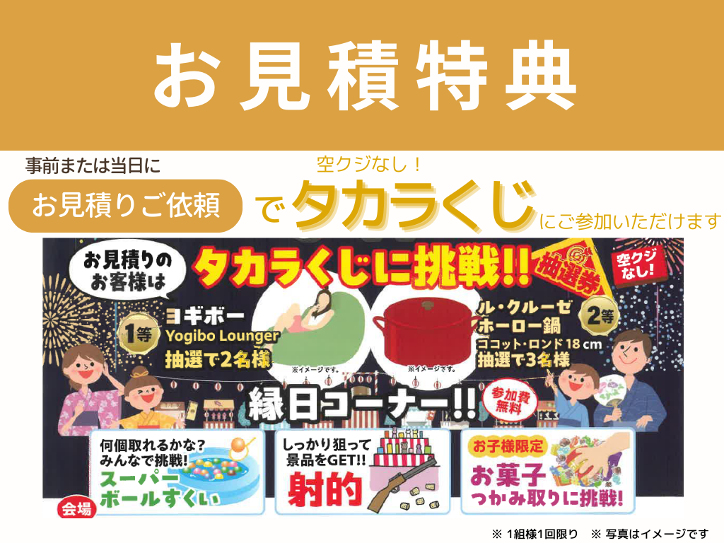 ●お見積特典:空クジなし!タカラくじに挑戦!