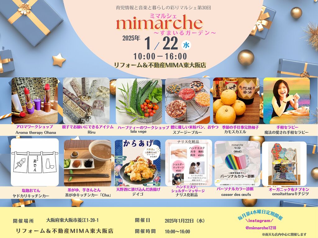 | タイトル | リフォーム&不動産MIMA東大阪店定期開催マルシェ ミマルシェ ~すまいるガーデン~ その他 |