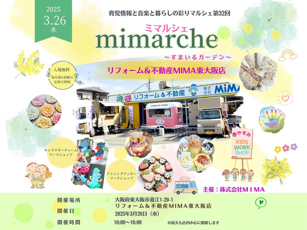 | タイトル | リフォーム&不動産MIMA東大阪店定期開催マルシェ ミマルシェ ~すまいるガーデン~ その他 |