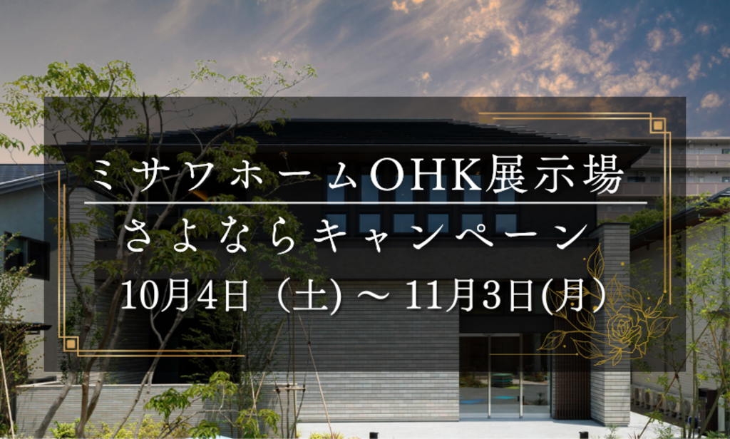 閉店までの1か月間さよならキャンペーンとして下記イベントを行いますので、この機会にぜひOHK展示場をご覧くださいませ!
