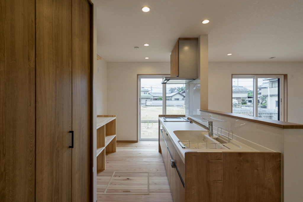 子育てや家事に忙しい現代の視点に立ち、水回りや収納配置を工夫し、徹底的にムダを省いた動線設計を実現しました。回遊性が高く、移動がスムーズなレイアウトにより、日々の家事効率が格段に向上します。住む人の生活に寄り添った設計の工夫をご覧ください。