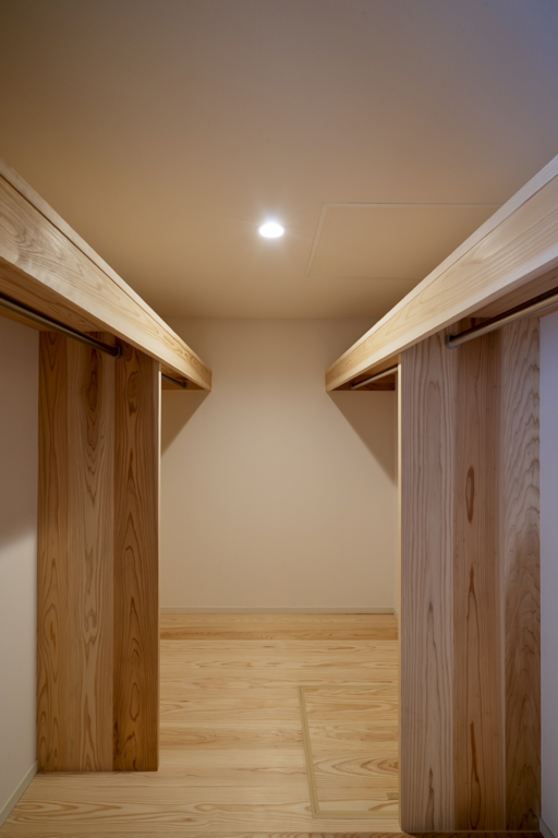 平屋の限られたスペースを最大限に活用するため、各所に計算された大容量の収納スペースを確保しています。季節のアイテムから日用品までしっかりと収まり、居住空間が常にすっきり片付きます。収納量が多く、部屋を有効に利用できる賢い収納計画をぜひ参考にしてください。