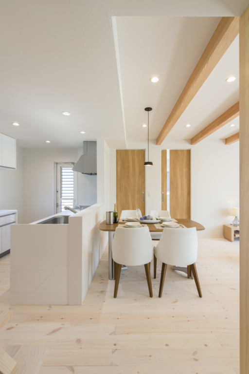 家族の笑顔が集まる、開放感あふれる20帖のLDK。家事動線を工夫し、お子様の様子にも目が届く安心設計です。陽光がたっぷり降り注ぐ明るい住まいで、毎日を快適に過ごせます。