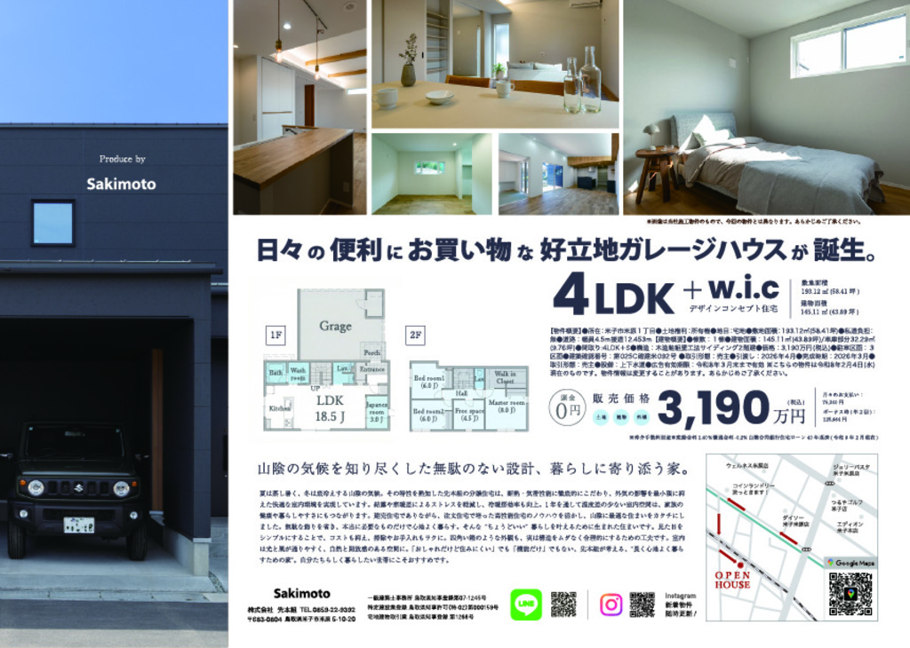 日々の便利にお買い物な好立地ガレージハウスが米子市に誕生。
