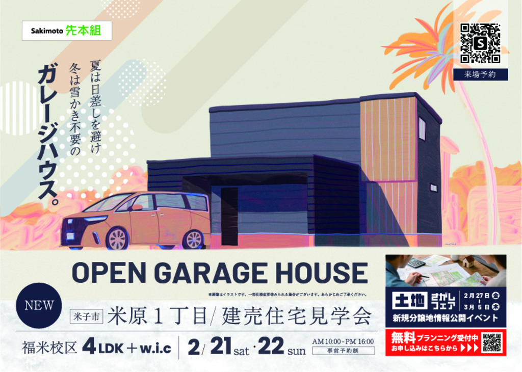 夏は日差しを避け 冬は雪かき不要の ガレージハウス!建売住宅見学会 IN鳥取県米子市
