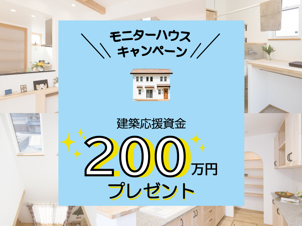 | タイトル | 【モニターハウスキャンペーン】建築応援資金200万円プレゼント! |