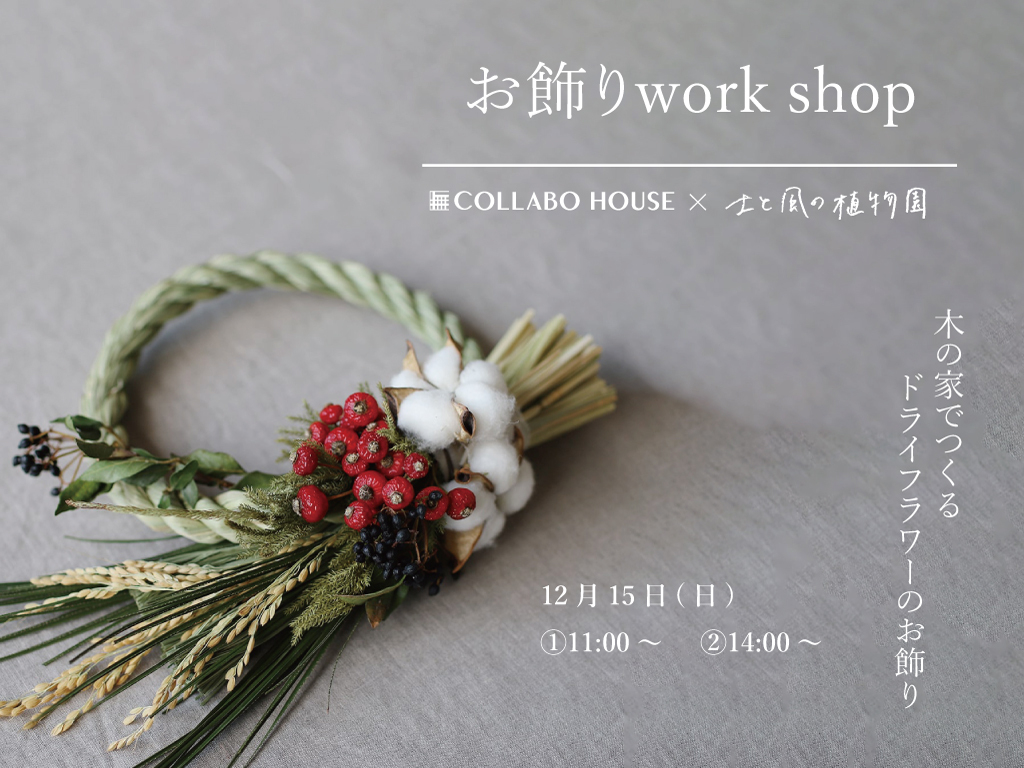 | タイトル | 【予約制】木の家でつくる ドライフラワーのお飾り |